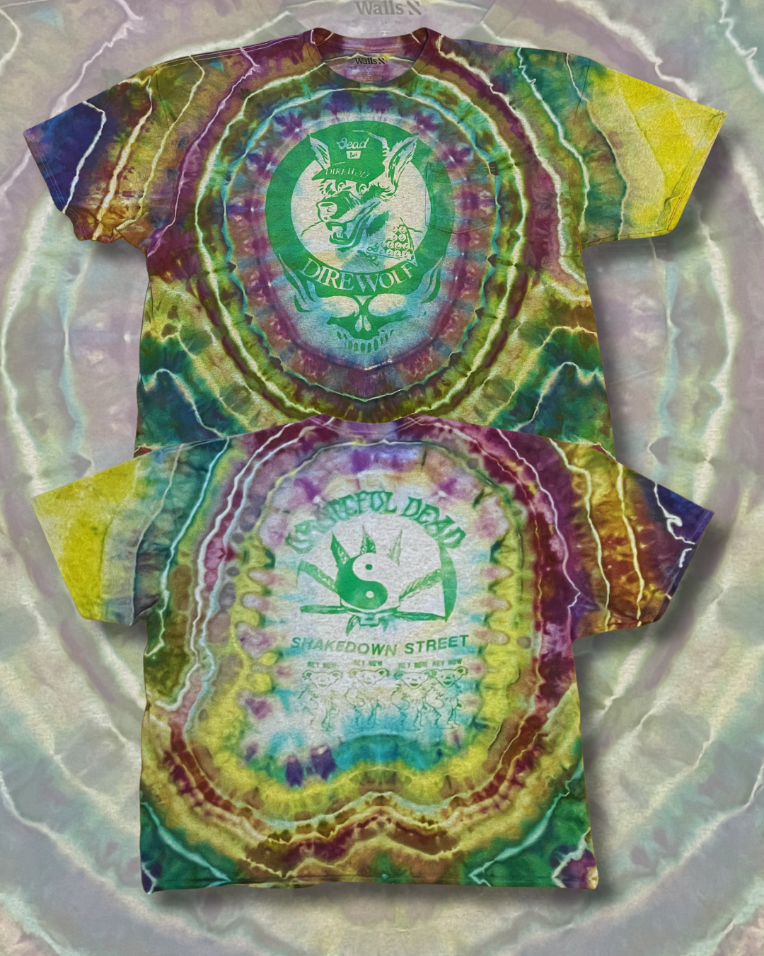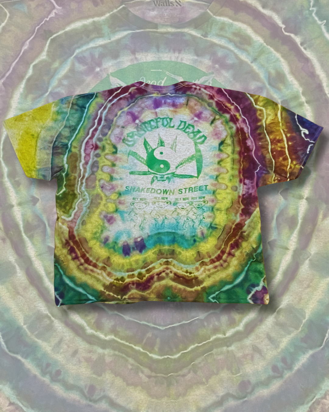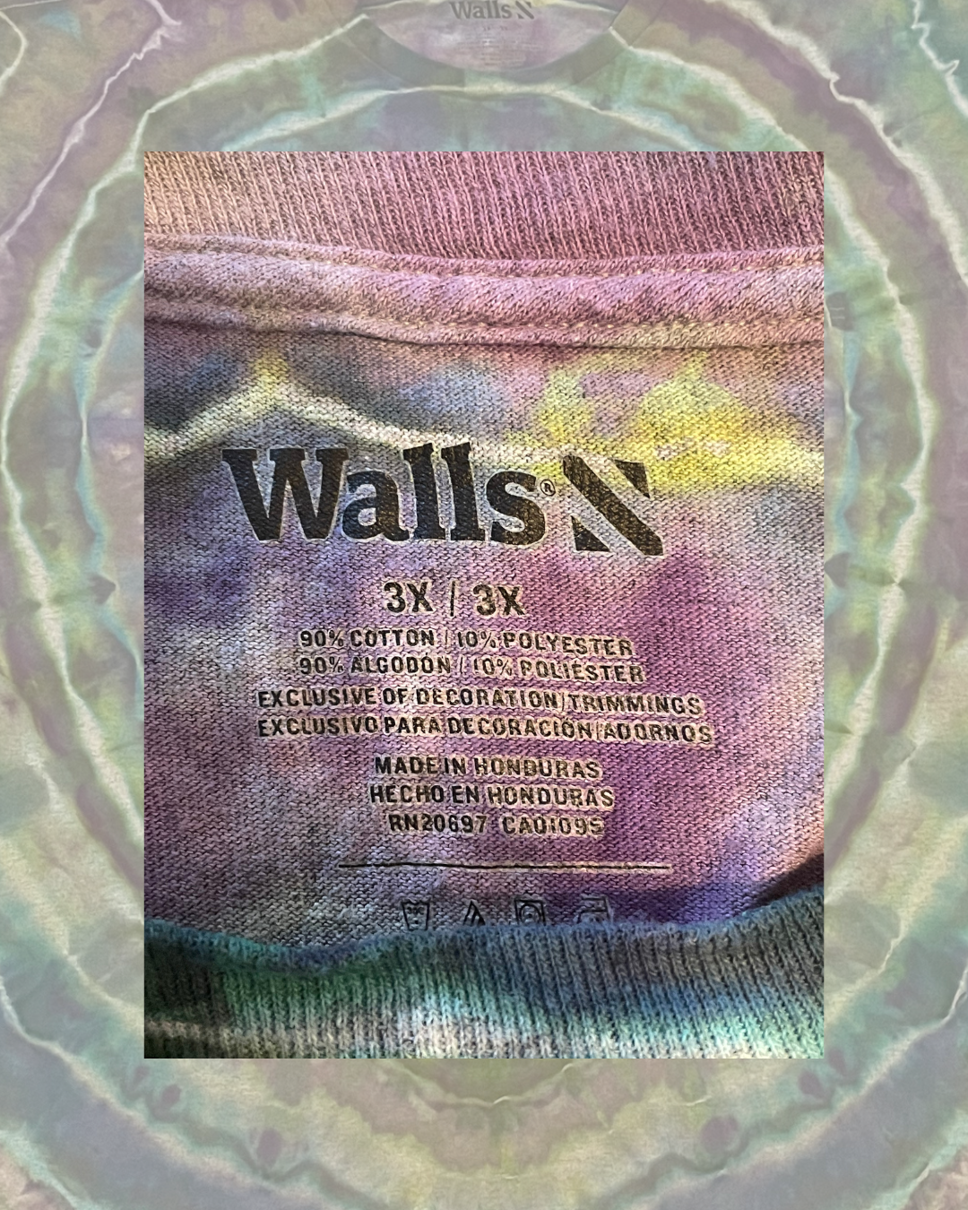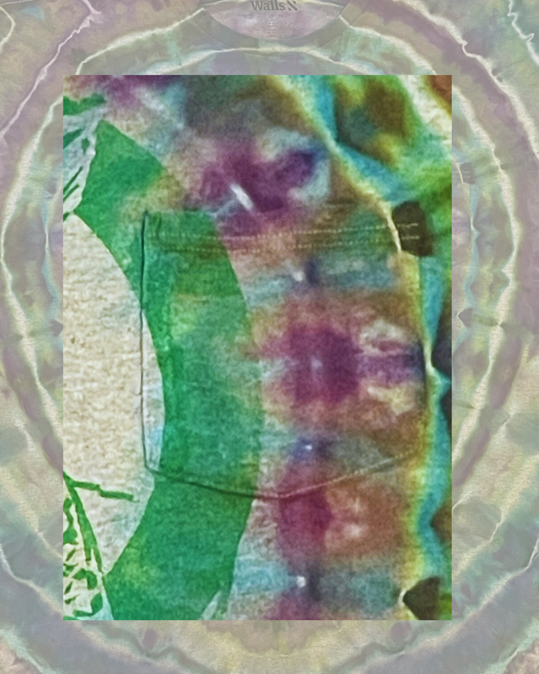 Printed on a sourced Walls pocket tee in size large